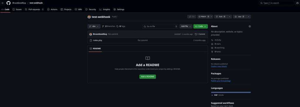 It’s just a simple repo containing some PHP code in the dev branch.