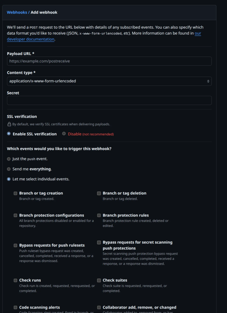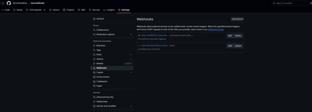Now that we’ve got our public URL ready, the next step is to set up the GitHub Webhook.