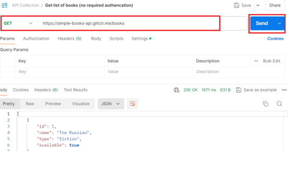 Click “Send,” and you should see a list of books in the response section