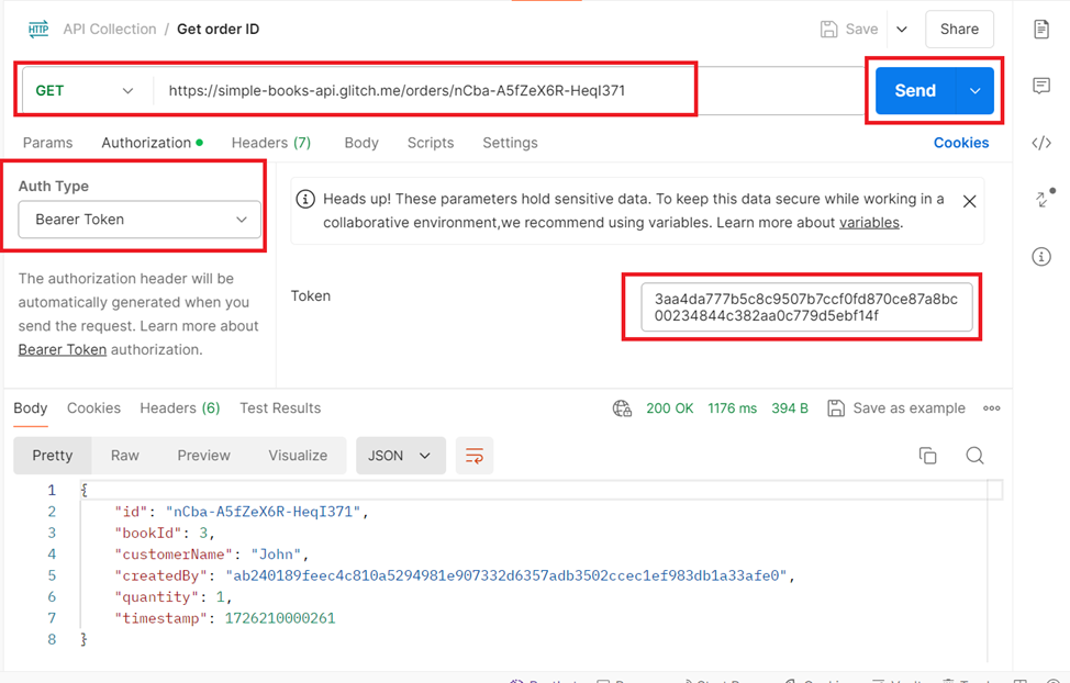 3.4. Send a GET request to get information of an order with authorization