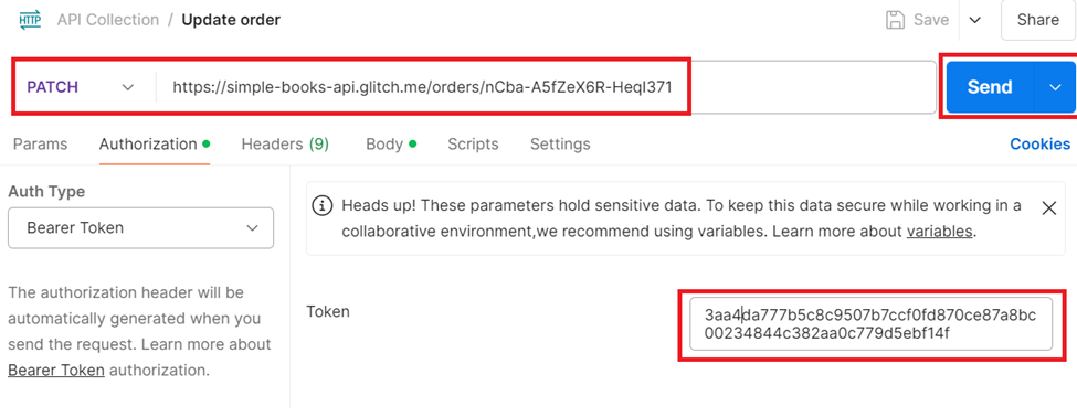 3.5. Send a PATCH request to update an order with required access token authorization