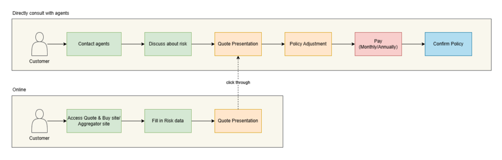 There are two main ways for you to estimate your quote: online and offline. Let’s see the user journey flow: