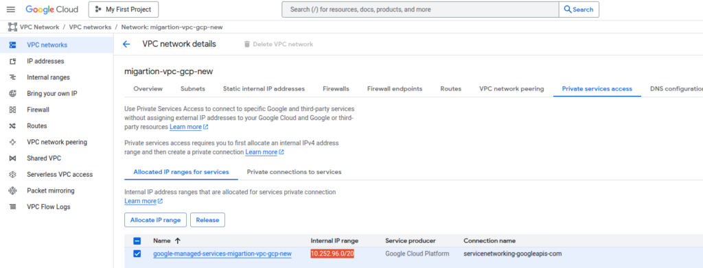 2. Allow GCP Cloud SQL internal IP ranges in AWS security group.
