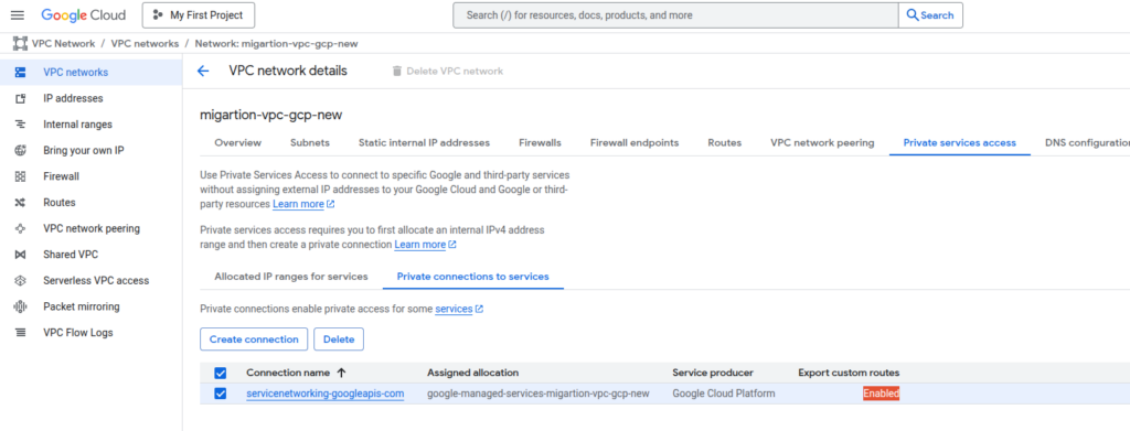 1. Enable “Export Custom Routes” and “Import Custom Routes” in GCP VPC network peering settings