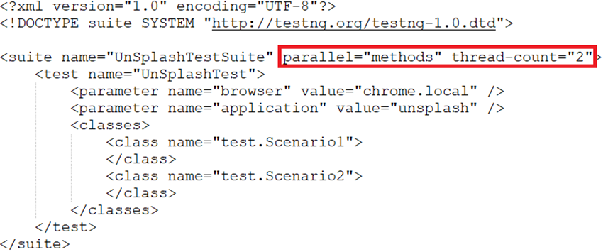 For the project which has a huge number of test cases, we need our automation framework to be able to run tests in parallel so that we can reduce test execution time and have the product quality status as early as possible. It depends on the test runner you choose. Let’s see the below picture for the example of TestNG suite.