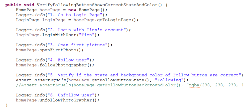 • Maintainability: By organizing the automation project and applying OOP, Design Pattern into the automation framework will help us to avoid duplicated code and save a lot of effort on updating the test script when there’s something changed.