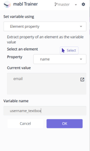 Variables help to test scenarios that require a variety of dynamic values and shorten the tests by passing variables in between one another. By adding variables, click on the {x} icon in mabl Trainer to create, manage, and use variables in the test.