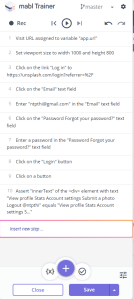 On mabl Trainer, click on Rec button, do the step you need to mabl Trainer to record your test scenarios. If you want to stop the recording, click on Rec again.