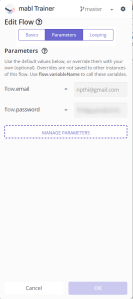 For managing parameters in flow, we edit flow, click on Parameters tab.
