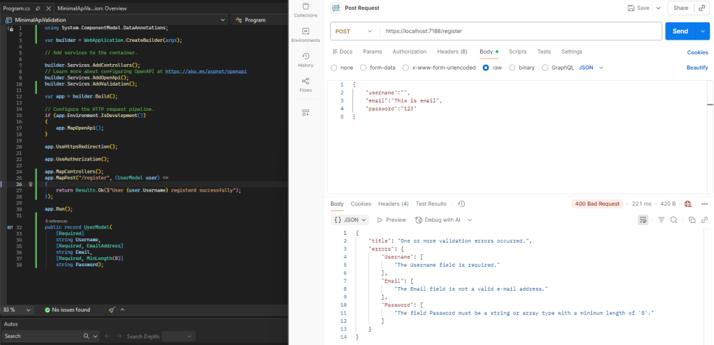Minimal APIs have been widely adopted for building lightweight services, but validation has historically required additional boilerplate or external libraries. .NET 10 improves validation support directly within Minimal APIs, reducing friction and improving readability.