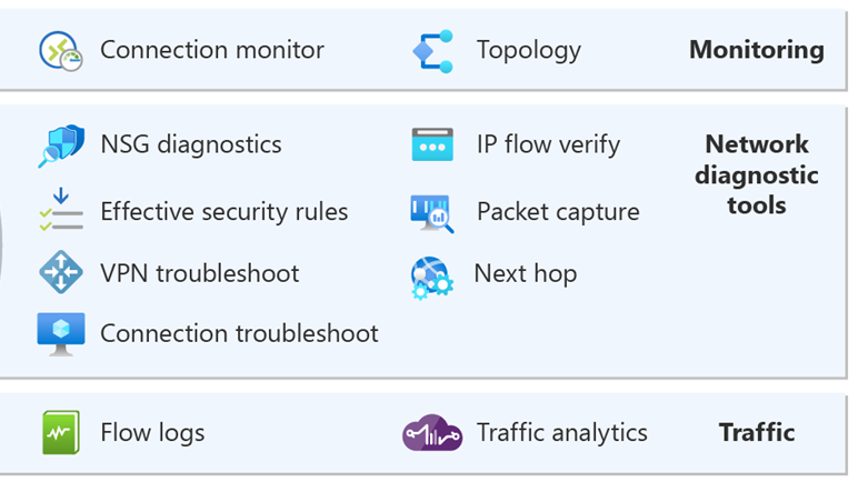 The term, clearly states that the resource watches the network in terms of tools like monitor, diagnosing, viewing the metrics and enabling and disabling the logs for Infrastructure as a Service in Azure resources.