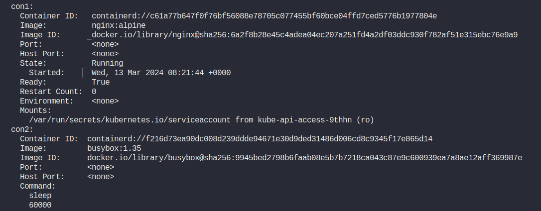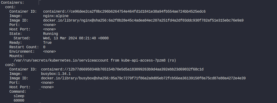 As you can see the image of busybox container has an image with a tag of 1.34.1.
