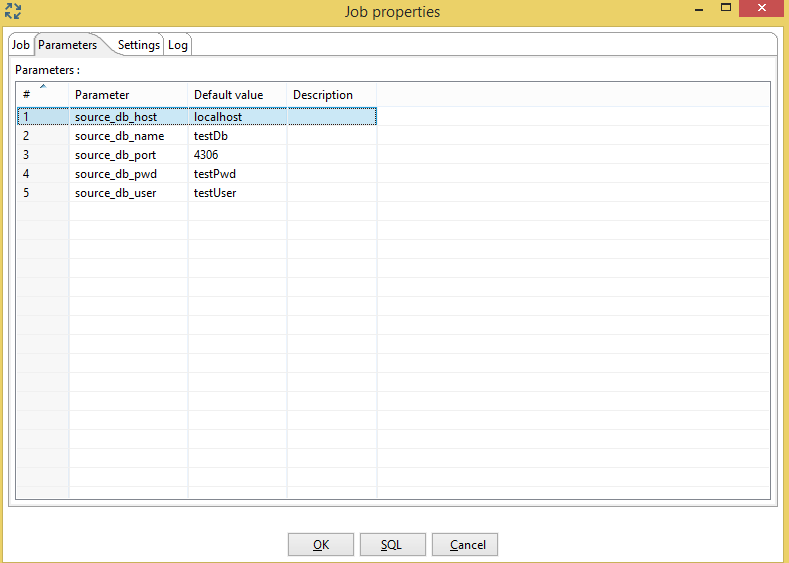 To define a parameter, right-click on the transformation workspace and select Transformation settings from the context menu (or just press Ctrl-T), then click on the Parameters tab.