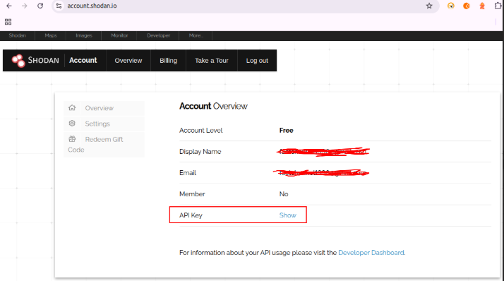 1. Obtain Shodan API Key: Sign up for a free Shodan account at https://www.shodan.io/ to obtain an API key.