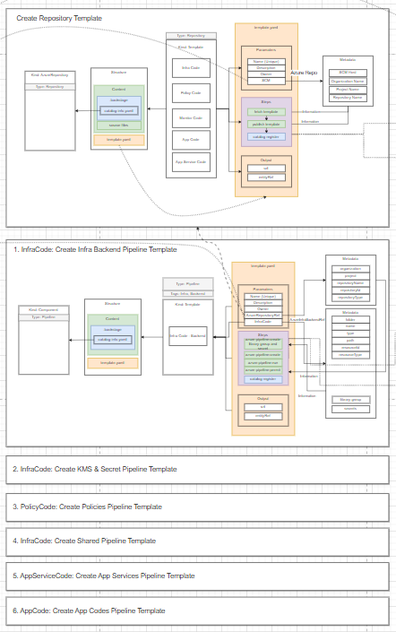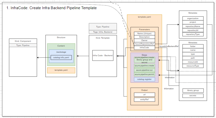 The template above will allow the developer to create an infrastructure backend (CI/CD pipeline in Azure DevOps) on the UI.
