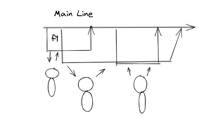 If we want to work on something on some feature or a hotfix we create a new branch we tend to work fast when applying feature branching because features are typically split into very small chunks so that it does not take much time to write code for something and once we are finished we create a pull request we review that pull request we run some automation as part of that pull request and we merge that branch back to the main line.