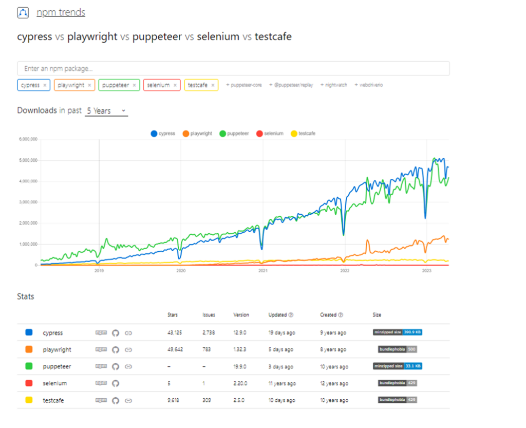 - Popularity: since its release in Jan 2020, Playwright has experienced a steady increase in usage and popularity