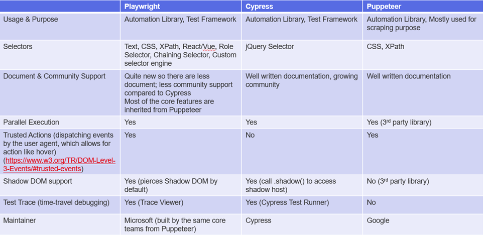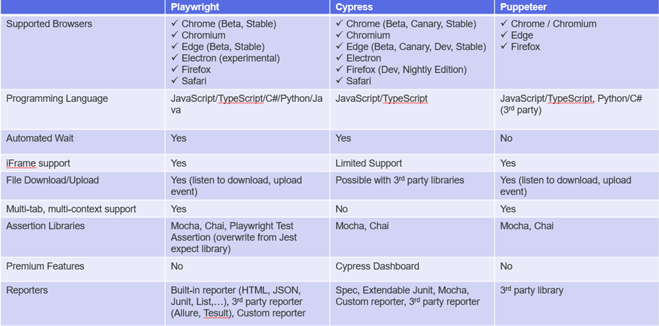 - Documentation, and community support: Though Playwright is a newcomer in the market, they have a steadily growing community.