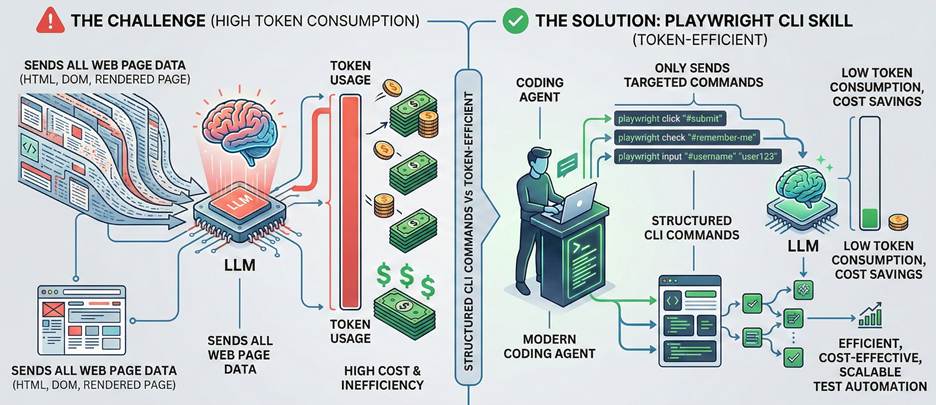 Modern coding agents increasingly favor CLI–based workflows exposed as SKILLs over MCP because CLI invocations are more token-efficient. Playwright CLI is a new initiative from Playwright, built on top of the Playwright agent skill. By leveraging structured commands and native Playwright capabilities, Playwright CLI enables more efficient, cost-effective, and scalable test automation workflows.