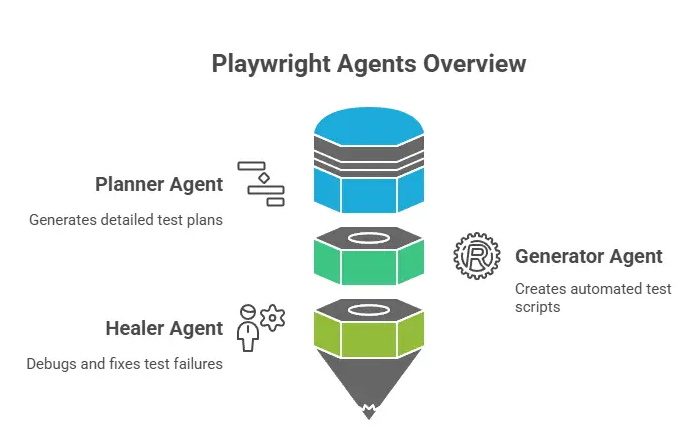 The Planner creates clear and structured test plans through the application, the Generator converts those plans into real Playwright test scripts, and the Healer runs and fixes failing tests when the UI changes. By working together, these three agents help testers write tests faster, cover more scenarios, and fix flaky test failures.