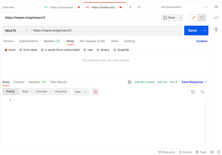Below is the example of delete a user from the api . here URL :- https://reqres.in/api/users/2