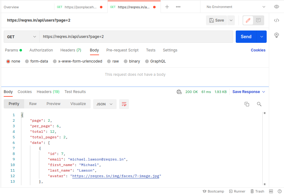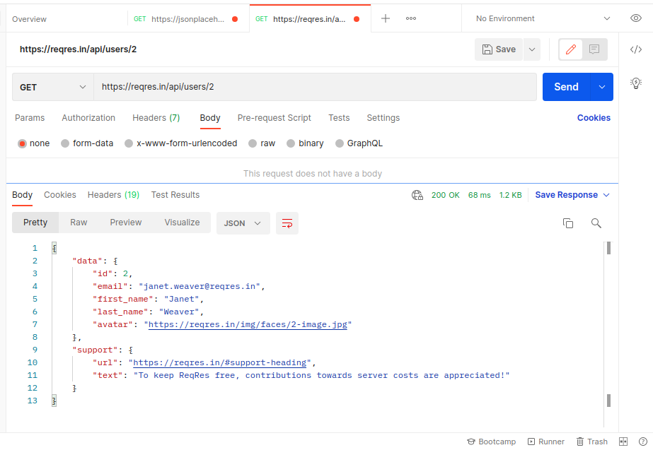 Below is the example of Reading single user from the api . here URL :- https://reqres.in/api/users/2