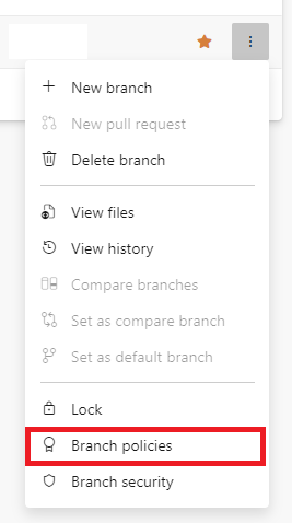 In the Navigation pane, select Repos -> Branches and choose to configure the Branch policies for the master branch.
