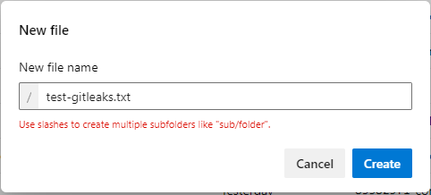 Check out (switch) to the test-gitleaks branch, create a new file named: test-gitleaks.txt