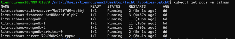 helm install litmuschaos litmuschaos/litmus --namespace litmus --create-namespace
