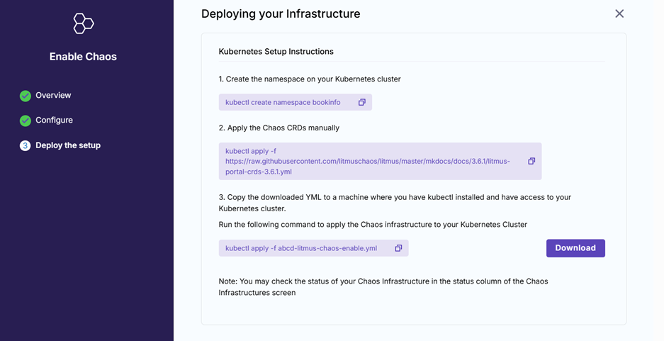 Then, apply the updated file to installing Chaos infrastructure.