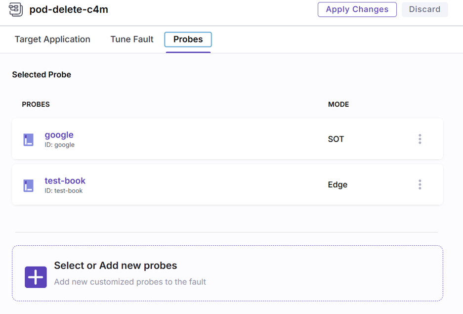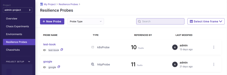 For creating new probes, we can go to Resilience Probes.