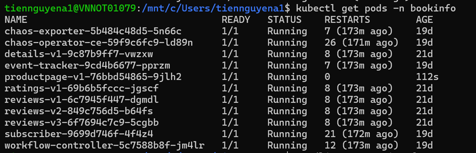 We can validate the installation with the following command to ensure that the chaos pods( chaos-exporter, chaos-operator, event-tracker, subscriber, workflow-controller pod) start successfully.