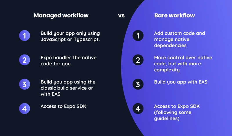 | Super-fast setup → running an app in minutes | Limited native flexibility in Managed Workflow |
