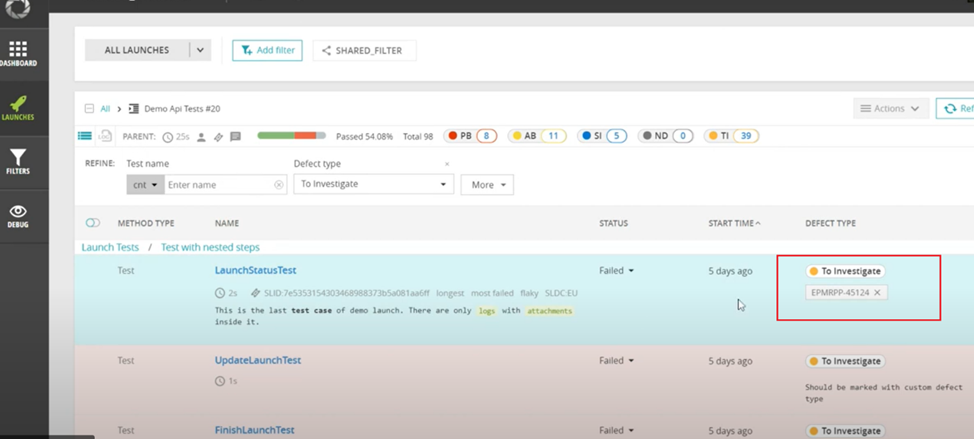 - Associate automation test scripts with the Test management system and link them to relevant bug records in the bug tracking system: Thanks to this, if the test cases are failed by the existing bug, we can detect it quickly.