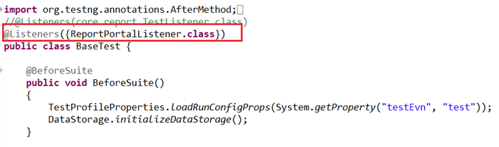 Add ReportPortalListener as test listener in our test class