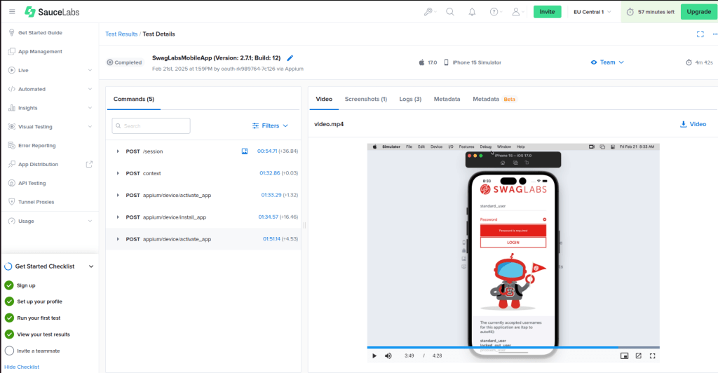 We’ll also provide practical code examples and best practices to ensure your tests are effective, reliable, and optimized for execution on Sauce Labs’ cloud-based testing platform. Before diving in, let’s go over the essential steps required to set up and execute your first iOS test on Sauce Labs