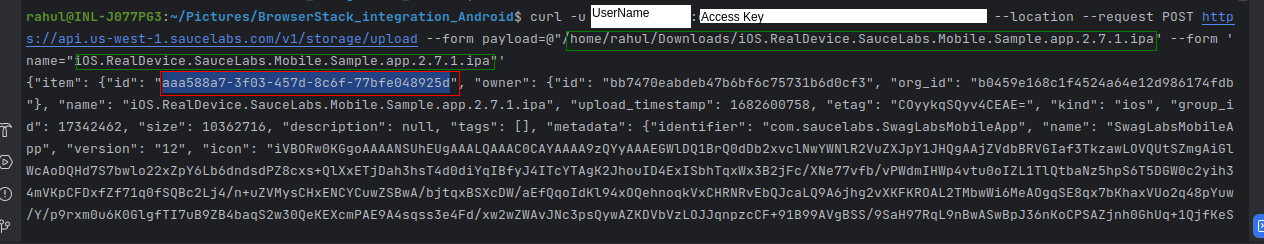 Similar to BrowserStack, Sauce Labs provides two options for uploading your iOS app:
