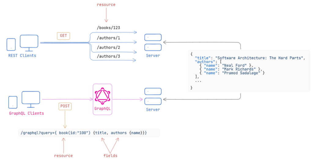 • REST: Responses are predefined by the server, which can lead to over-fetching or under-fetching of data.