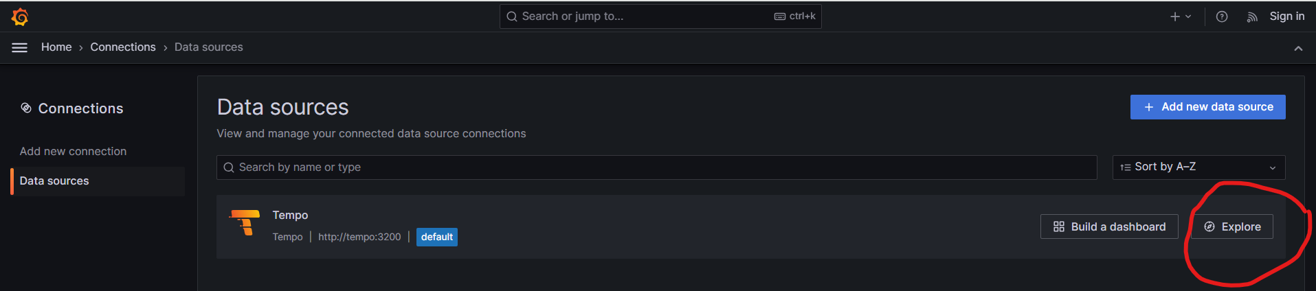 - Access Grafana http://grafana:4000/ . Home -> Connections -> Data Sources -> Tempo -> Explore