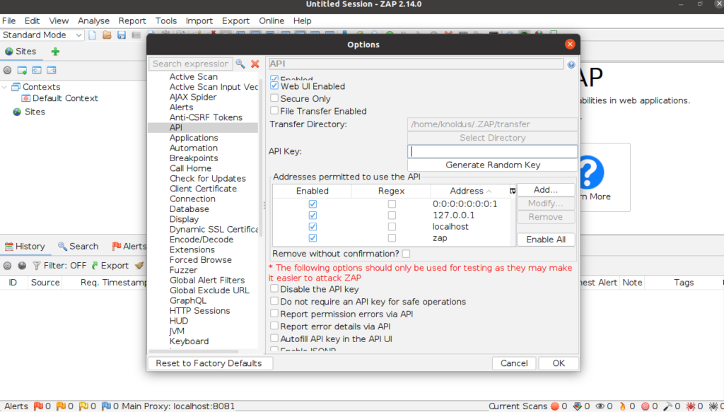 Step 1 : Launch OWASP Zap and find the API key