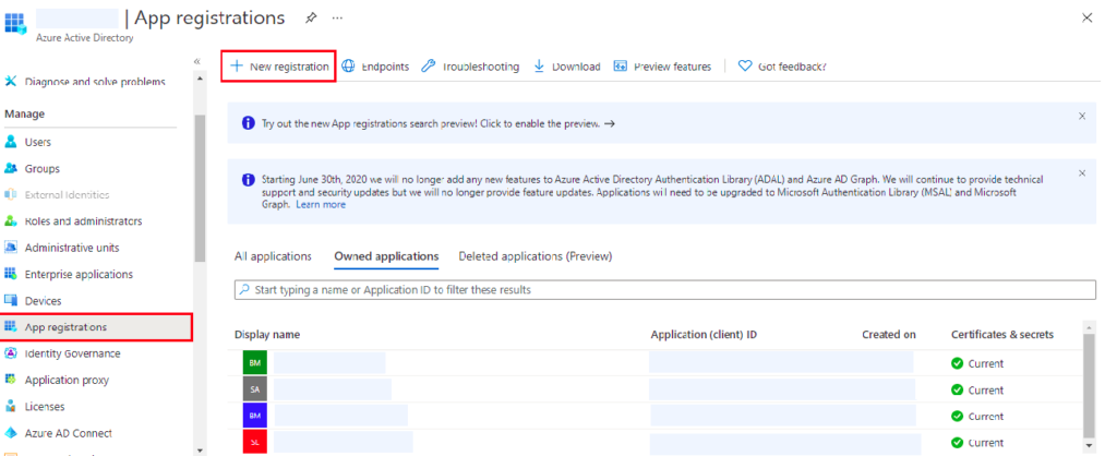 - Step 2: Click on the app registrations and inside that click on the new registration (as shown in the image).