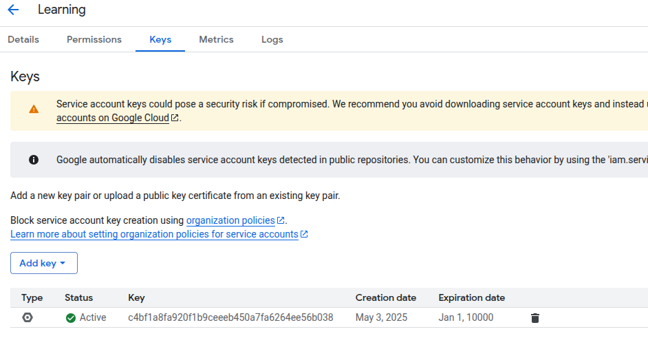 If you see a permission error, ensure your service account has at least Viewer or Editor access to the project.