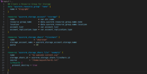 Let’s dive into the Terraform configuration to provision Azure file storage resources.
