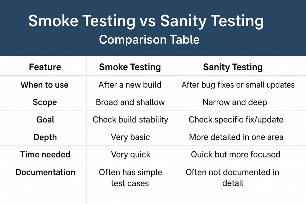 Smoke Testing vs. Sanity Testing: Comparison Table