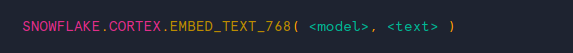 SELECT SNOWFLAKE.CORTEX.EMBED_TEXT_768(‘llama2-70b-chat’, ‘Can KKR win the IPL?’)