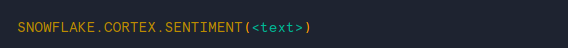 SENTIMENT provides a floating-point value ranging from -1 to 1, representing the degree of negativity in the text, 0 for being neutral, and 1 for the highest level of positivity. Here is the following syntax and an example:
