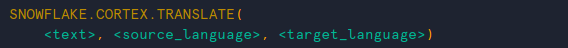 SELECT SNOWFLAKE.CORTEX.TRANSLATE( ‘سعيد بلقائك’, ‘fr’, ‘en’)