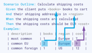 - Scenario outline preserves the input-output table we discussed during discovery.