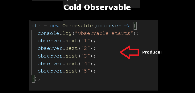 The Producer is the one that produces the data. In the above example, it is part of the observable itself. We cannot use that to emit data ourselves.