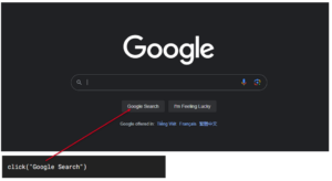 For example, to click on the “Google Search” button, we can use the following code: click(“Google Search”)